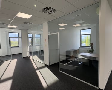 Ścianki całoszklane wewnętrzne to eleganckie i nowoczesne rozwiązanie, które pozwala na optyczne powiększenie przestrzeni oraz wprowadzenie naturalnego światła do wnętrz. Dzięki swojej przejrzystości, zachowują otwartą atmosferę, jednocześnie oddzielając poszczególne strefy w pomieszczeniu.